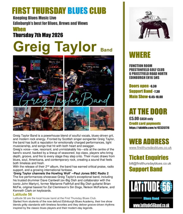Born from the remnents of the Edinburgh Blues Academy, plesase find out more information at www.latitude56band.co.uk